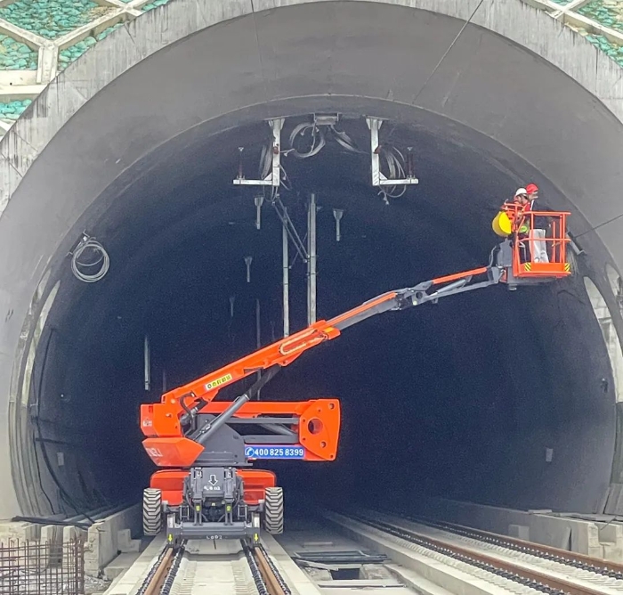 在大型基建项目中,轨道运输是提升效率的关键。乐球直播体育官网轨道高空车专为隧道内作业设计,具备400kg荷载能力、12km/h的行驶速度,可快速完成设备转运和人员输送,适应复杂施工环境。