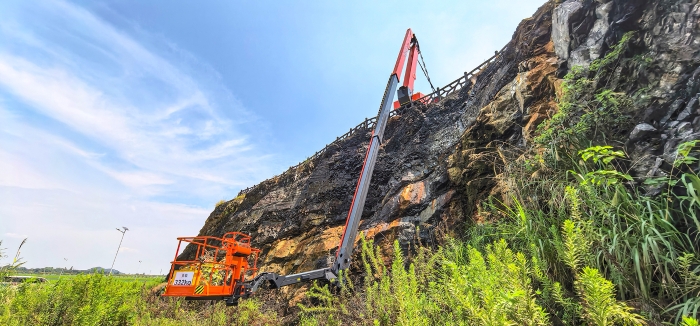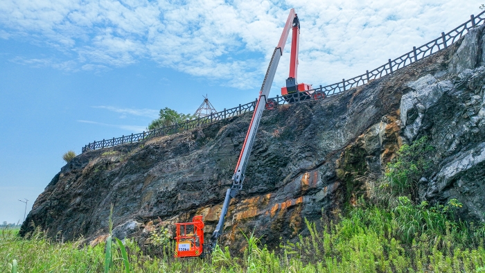 但其实,除了高度外,还有一项参数常常被人所忽视,那就是曲臂特有的下探本领。鉴于曲臂结构的特殊性,它不仅可以“上天”,还特别能“入地”——尤其是应对那些需要深度下探的复杂工况,比如矿坑作业、陡坡作业等。